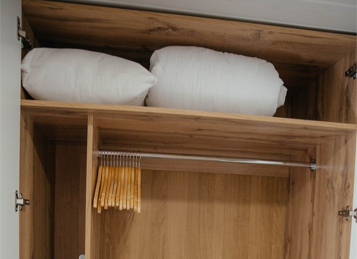 - Мебель: диван, кровати односпальные /одна двуспальная кровать, прикроватные тумбочки, стол, стулья, шкаф