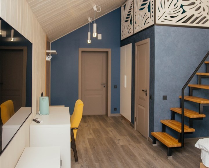 | Джуниор сюит Двухуровневый 2-местный для проживания с животными | 32 кв.м. | 3 чел. | Мебель (диван раскладной, кровати односпальные /одна двуспальная кровать, прикроватные тумбочки, сто... | |