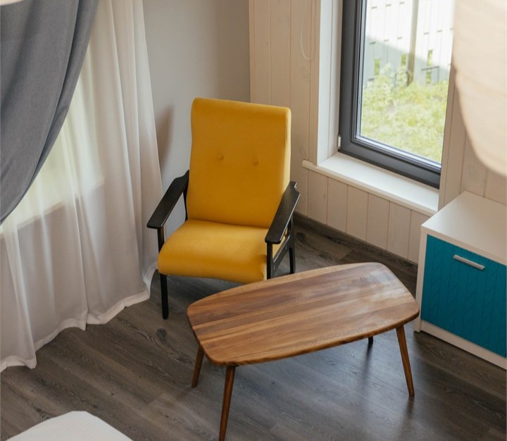 - Мебель: кровати односпальные /одна двуспальная кровать, прикроватные тумбочки, стол, стулья, шкаф