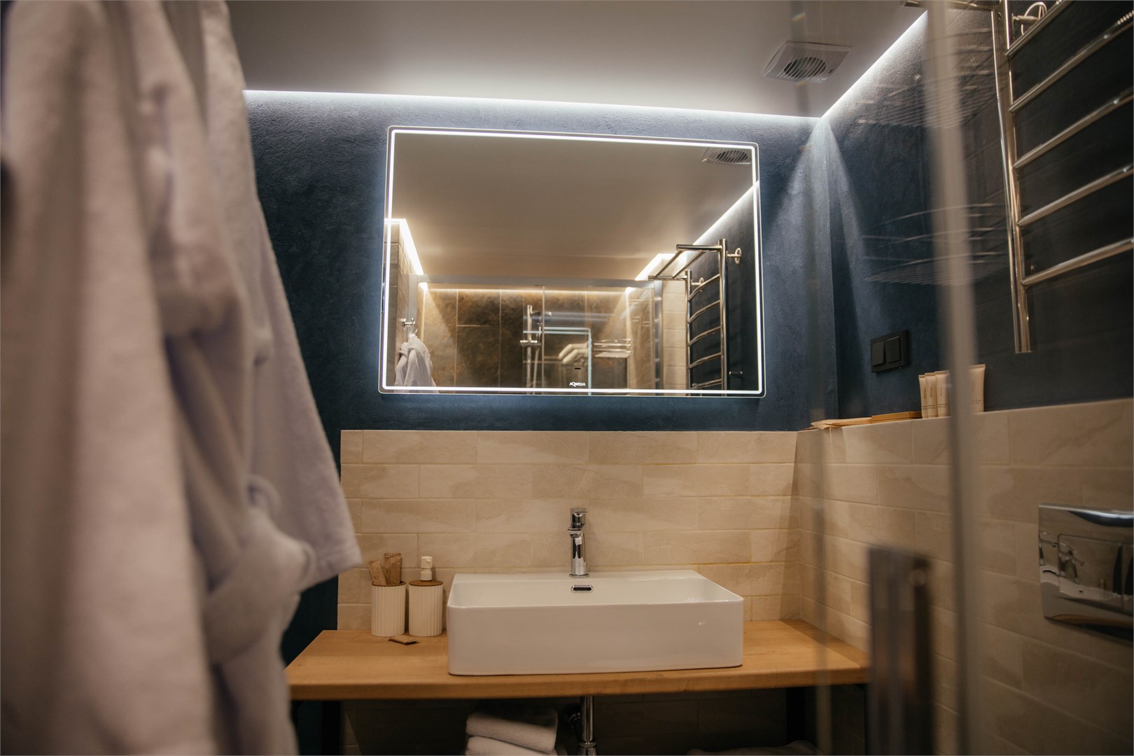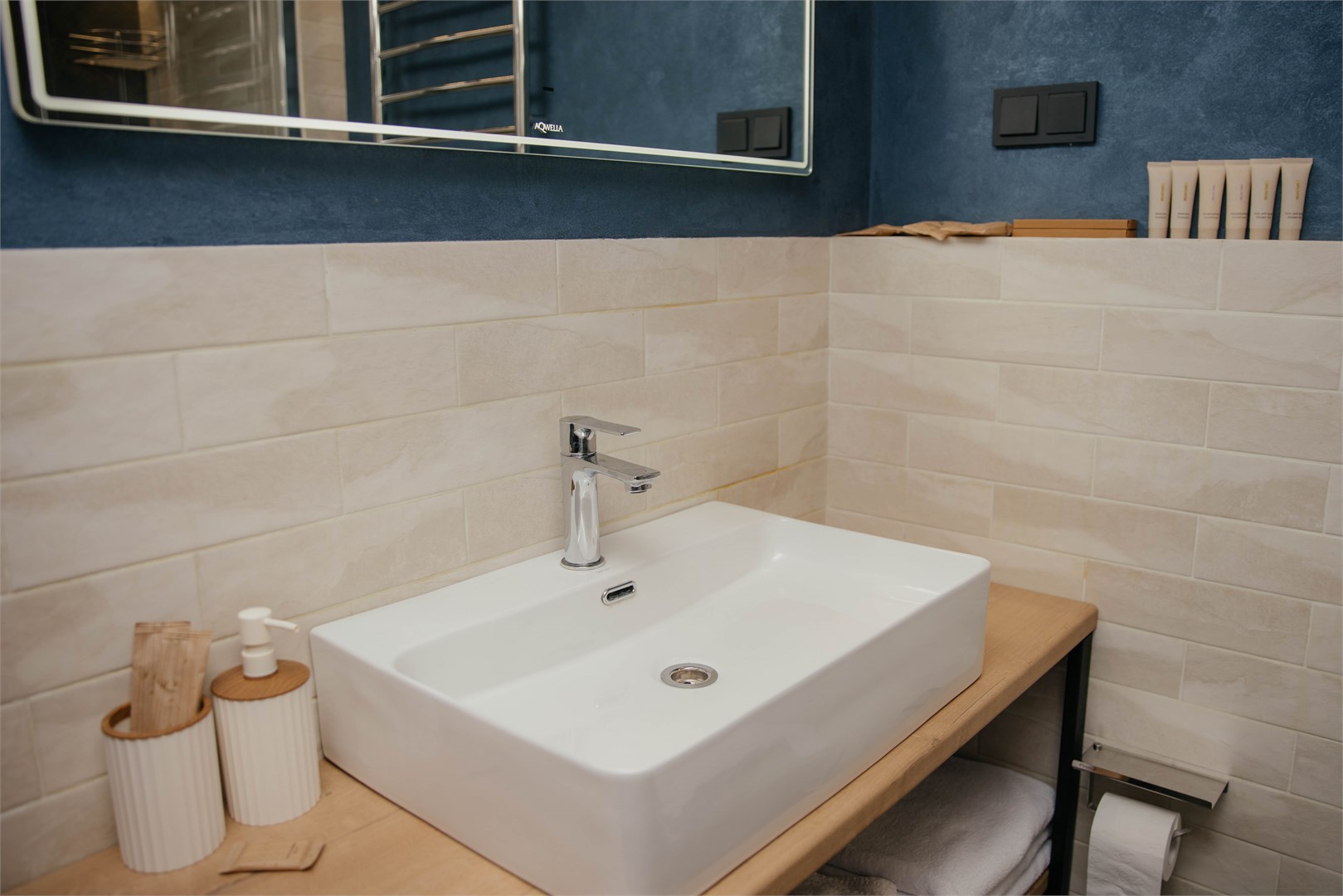 - Санузел: с душевой кабиной, тапочки, туалетные принадлежности, фен, халат