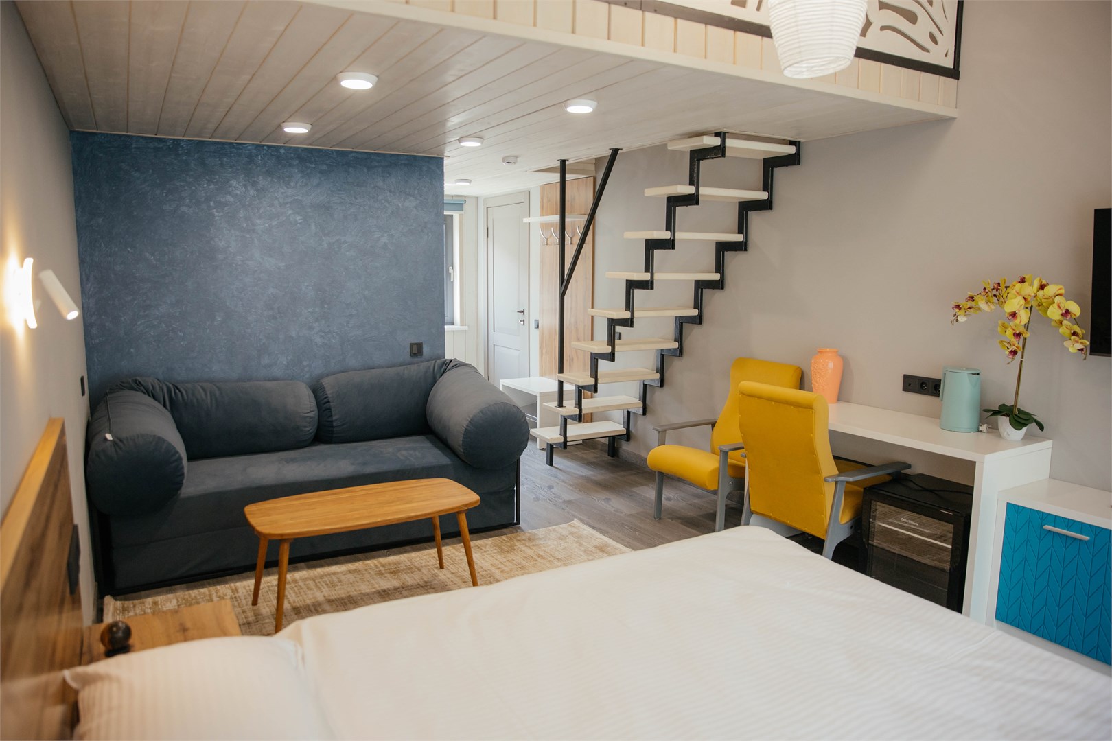 | Джуниор сюит Двухуровневый 2-местный с зоной отдыха | 31 кв.м. | 3 чел. | Балкон (терраса), Мебель (диван, кровати односпальные /одна двуспальная кровать, прикроватные тумбоч... | |